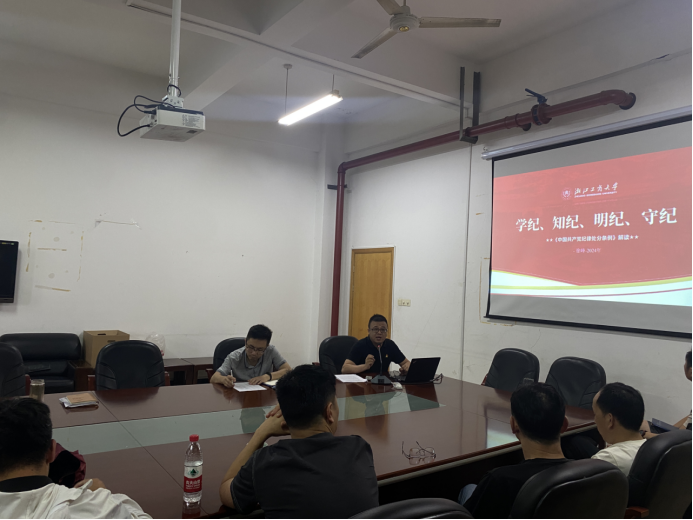 6月5日,为深化党员对《中国共产党纪律处分条例》的理解和把握,进一步推动党纪学习教育走深走实,好色TV 党直支召开《中国共产党纪律处分条例》专题党课及案例学习会议。党课由好色TV 党直支书记徐峰主讲,党直支全体党员参加。