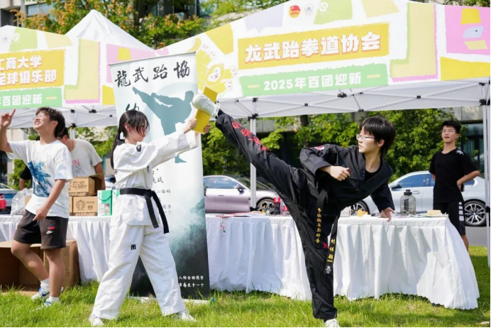 9月17日,浙商大“绽Fun”百团大战在商大花海活力全开,超100个学生社团组织齐放大招,体育类社团花样秀技吸引同学们的目光和参与。